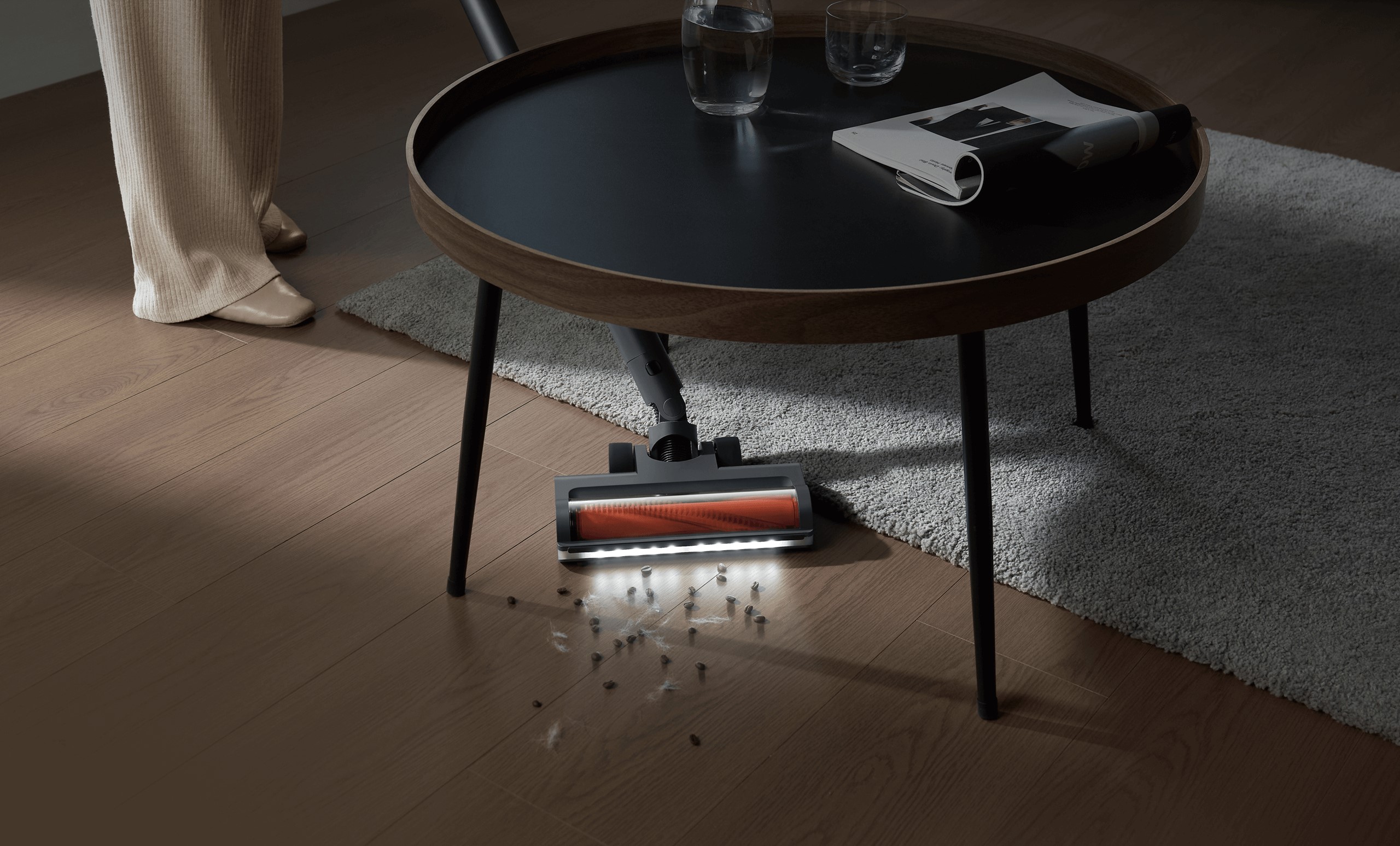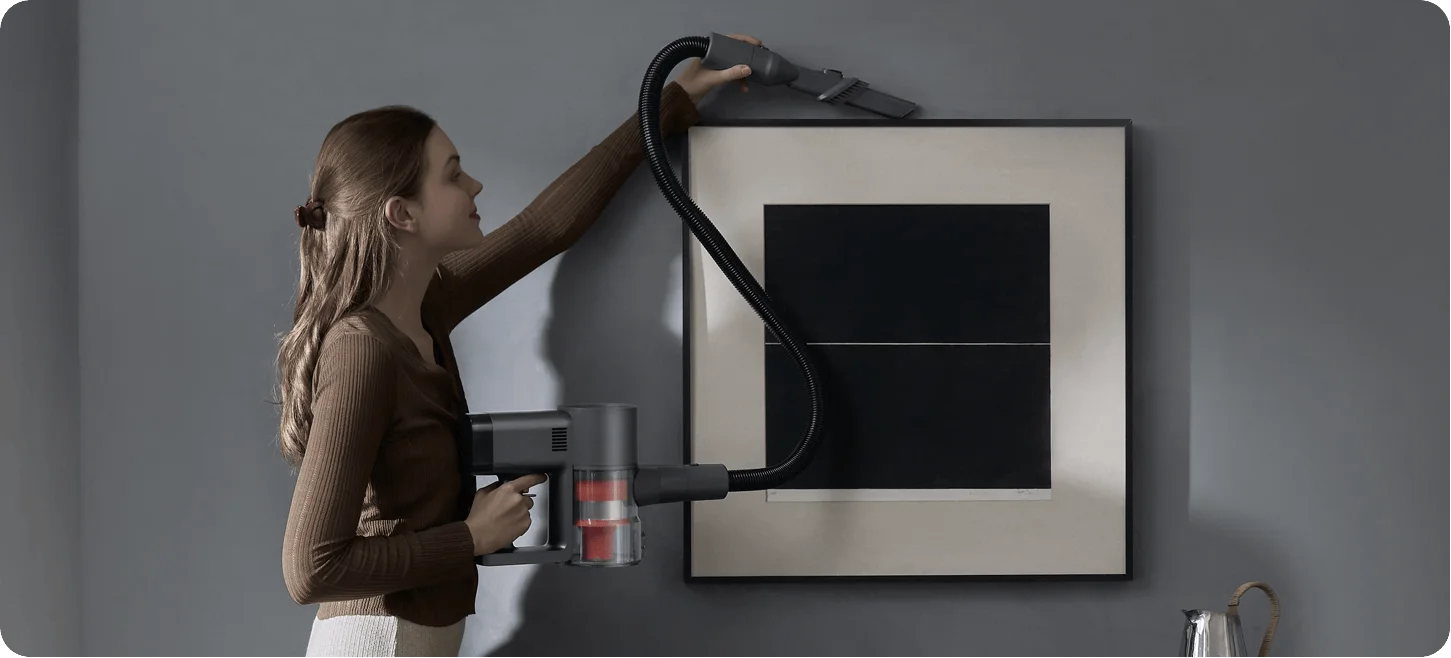 Благодаря высокопроизводительному бесщеточному двигателю с максимальной мощностью 520 Вт, пылесос обеспечивает силу всасывания до 25000 Па, что позволяет эффективно удалять крупный мусор, длинные волосы на коврах и пыль из глубоких щелей.