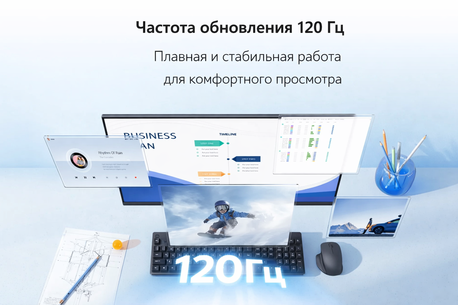Частота обновления 120 Гц делает изображение более плавным и приятным для глаз при прокрутке страниц, работе с интерфейсом, просмотре динамичного контента и в играх. Время отклика 6 мс позволяет модели уверенно справляться с повседневными задачами, а поддержка NVIDIA G-SYNC Compatible помогает сделать картинку более стабильной и уменьшить разрывы кадра в совместимых игровых сценариях.